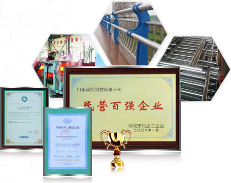 山東美特鋼材有限公司(15863566668)是常年專業(yè)從事生產(chǎn)、銷售內(nèi)外襯不銹鋼復(fù)合管,不銹鋼復(fù)合管護(hù)欄的廠家,公司擁有完整的不銹鋼及不銹鋼復(fù)合管生產(chǎn)線24條,以及各類金屬加工設(shè)備多套(數(shù)控等離子切割機(jī)、沖床、冼床等),公司還擁有獨(dú)立的鍍鋅和噴塑車間,良好地處理好鋼板表面效果。 公司優(yōu)勢:一、專業(yè)性強(qiáng)1.專業(yè)設(shè)計、制作和安裝不銹鋼復(fù)合管工程及金屬欄桿工程。集設(shè)計、生產(chǎn)、銷售與安裝為一體的完整體系。2.專業(yè)應(yīng)于:橋梁欄桿、市政建設(shè)、景觀護(hù)欄、體育器材、車輛機(jī)構(gòu)、紡織機(jī)械、醫(yī)療設(shè)備等二、質(zhì)量過硬1.通過IS09001:2000質(zhì)量體系認(rèn)證2. 獲得“全國質(zhì)量、服務(wù)、信譽(yù)AAAA及”企業(yè)稱號,“中國綠色環(huán)保建材產(chǎn)品”,“中國優(yōu)質(zhì)建材產(chǎn)品”…